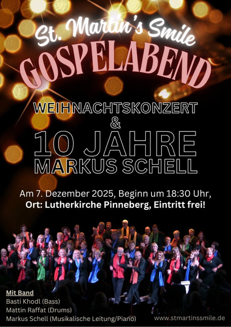 07.12.2025, 18.30 Uhr: Konzert, Weihnachtskonzert mit 10-Jahre-Jubiläum des Chorleiters Markus Schell kombiniert, Lutherkirche Pinneberg